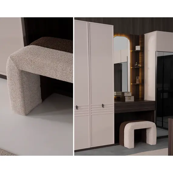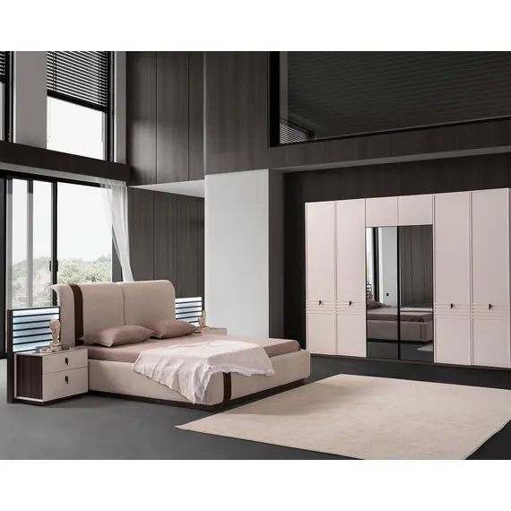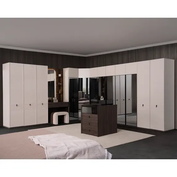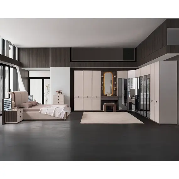 غرفة نوم متكاملة بأعلى معايير الجودة الصناعة التركية، تجمع بين الأناقة والعملية، مصممة خصيصًا لتوفير الراحة والتنظيم في مساحة عصرية