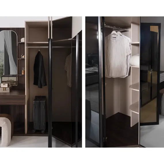 • تصميم الدولاب يوفر مساحة تخزين واسعة لتنظيم الملابس والأغراض المختلفة بسهولة وأناقة.