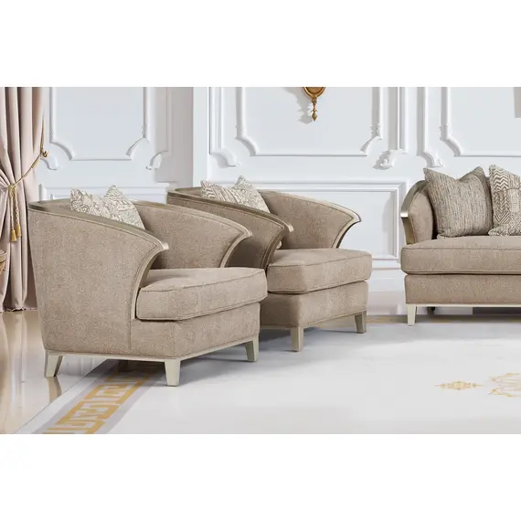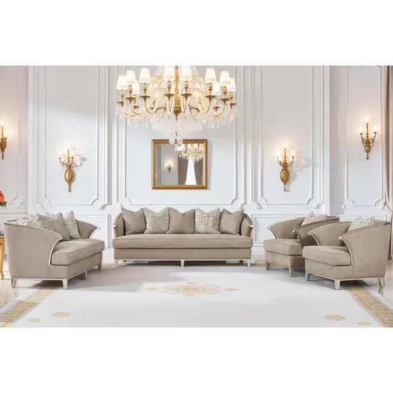 تصميم الأرائك والكراسي يجمع بين الراحة والذوق الرفيع، ما يجعله الخيار الأمثل للمجالس الرسمية أو صالات الاستقبال في المنازل الراقية